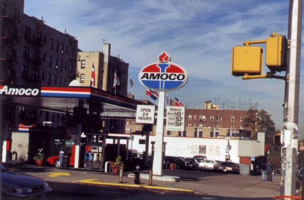 На Бродвее. Между 185 и 187 улицами (одну съела бенззозаправка :-) Белое здание за ней - супермаркет системы Key Food.