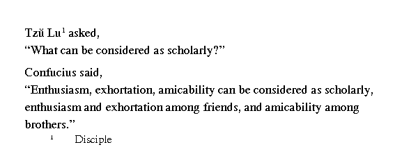 ≈Благородный муж стремится к единству через разномыслие, но не стремится к единству через послушание. Маленький человек стремится к единству через послушание, но не стремится к единству через разномыслие.