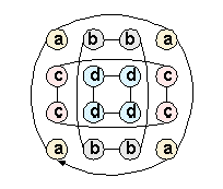 Здесь x=a,b,c,d означает сумму всех чисел в клетках, помеченных буквой x |